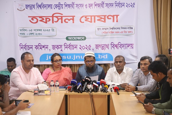 জগন্নাথ বিশ্ববিদ্যালয় কেন্দ্রীয় শিক্ষার্থী সংসদ (জকসু) নির্বাচন ২০২৫ আগামী ২২ ডিসেম্বর (সোমবার) অনুষ্ঠিত হবে। একই দিন বিশ্ববিদ্যালয়ের নওয়াব ফয়জুন্নেসা চৌধুরানী হল সংসদ শিক্ষার্থী প্রতিনিধি নির্বাচনও ....
