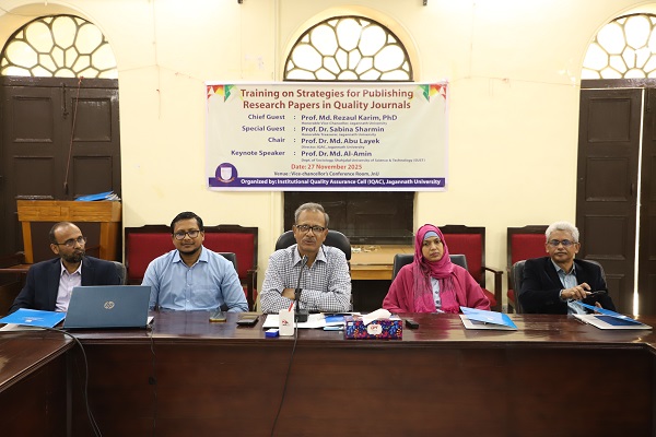 জগন্নাথ বিশ্ববিদ্যালয়ের (জবি) ইনস্টিটিউশনাল কোয়ালিটি অ্যাসুরেন্স সেল (আইকিউএসি)-এর উদ্যোগে বৃহস্পতিবার (২৭ নভেম্বর ২০২৫) দ্বিতীয় ধাপে ‘স্ট্র্যাটেজিস ফর পাবলিশিং রিসার্চ পেপারস ইন কোয়ালিটি জার্নাল’ শীর্ষক দিনব্যাপী প্রশিক্ষণ কর্মশালা....
